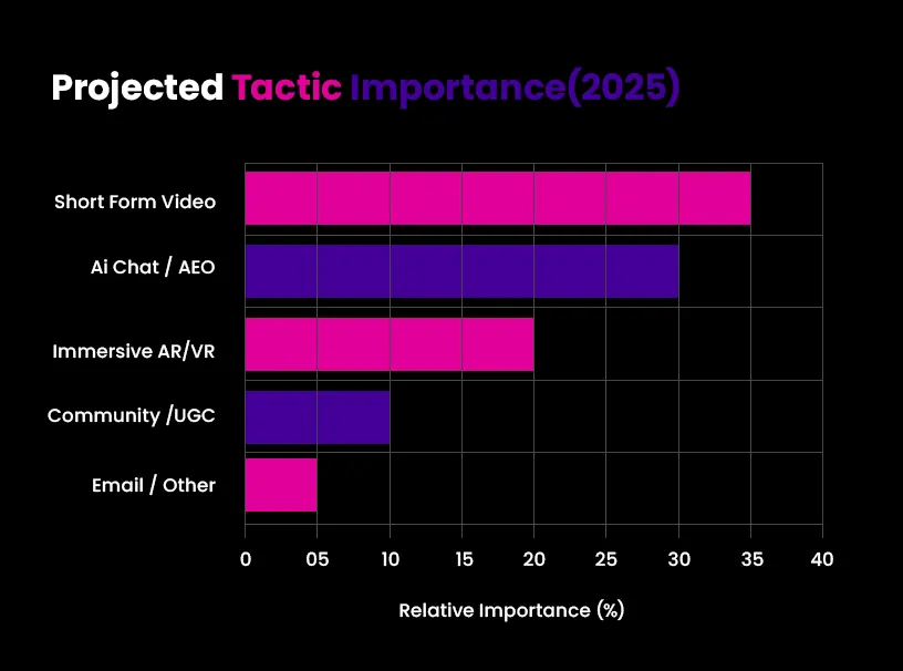 Understanding the “why” (the pillars) informs the “how” (strategies) and the “what” (tactics). This section breaks down how core strategies are being executed through specific marketing tactics. Explore the chart to see the projected importance of key tactics for 2025.